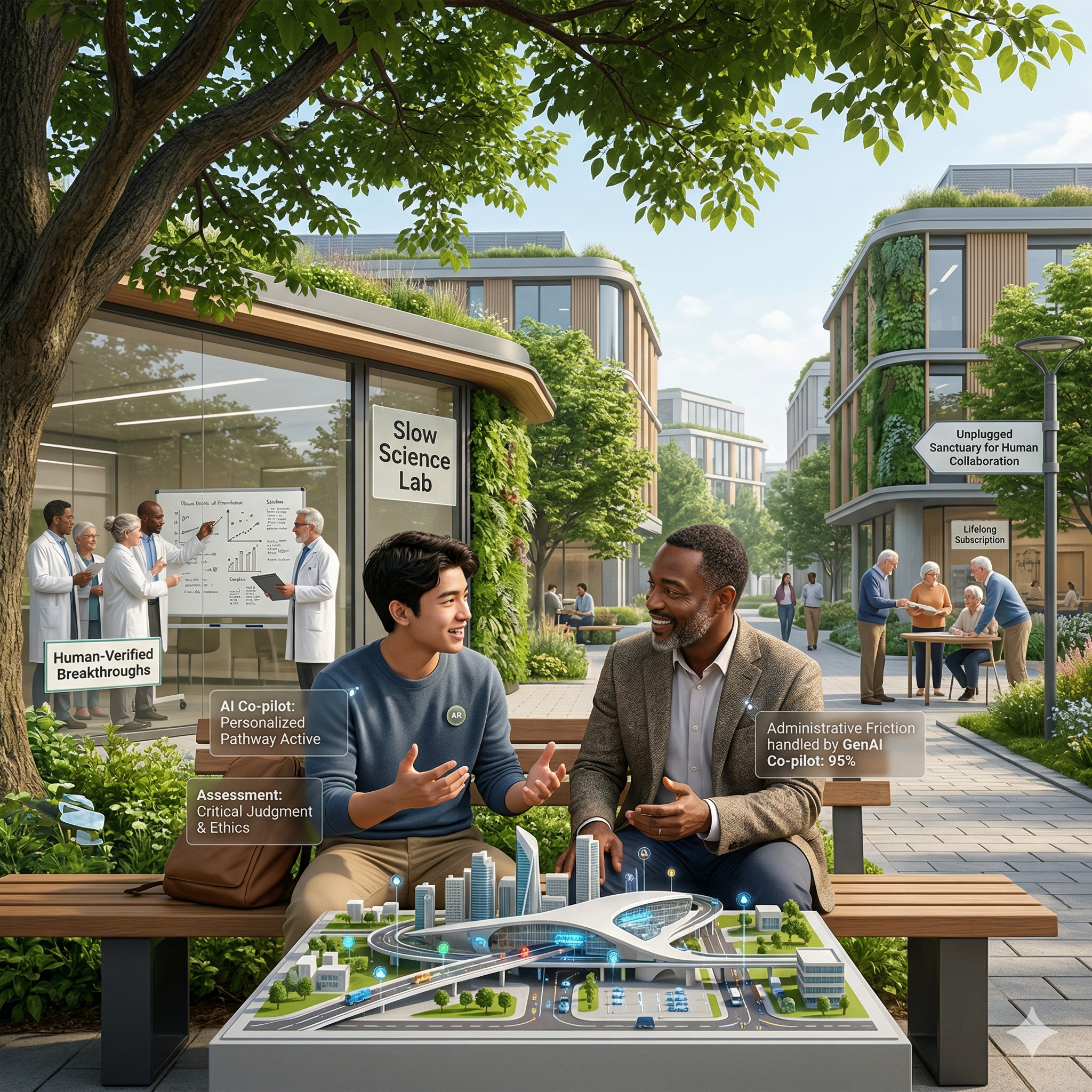 The 2030 university is not a factory for producing code or content. It is a forge for human judgment. By offloading the mechanical aspects of thought to Authentic Intelligence, we create an institution uniquely dedicated to the messy, brilliant, and irreplaceable qualities of the human mind.